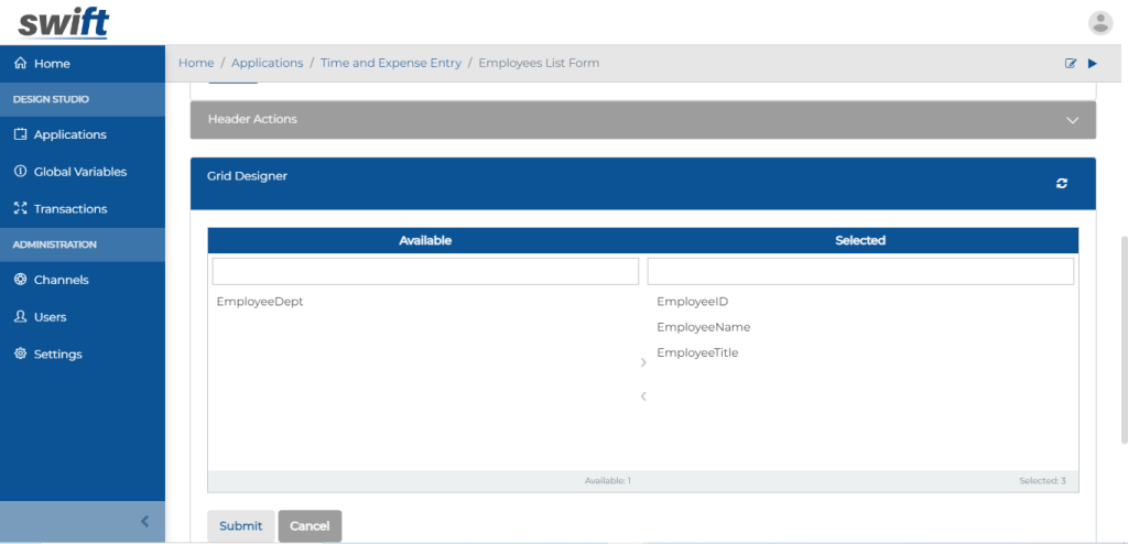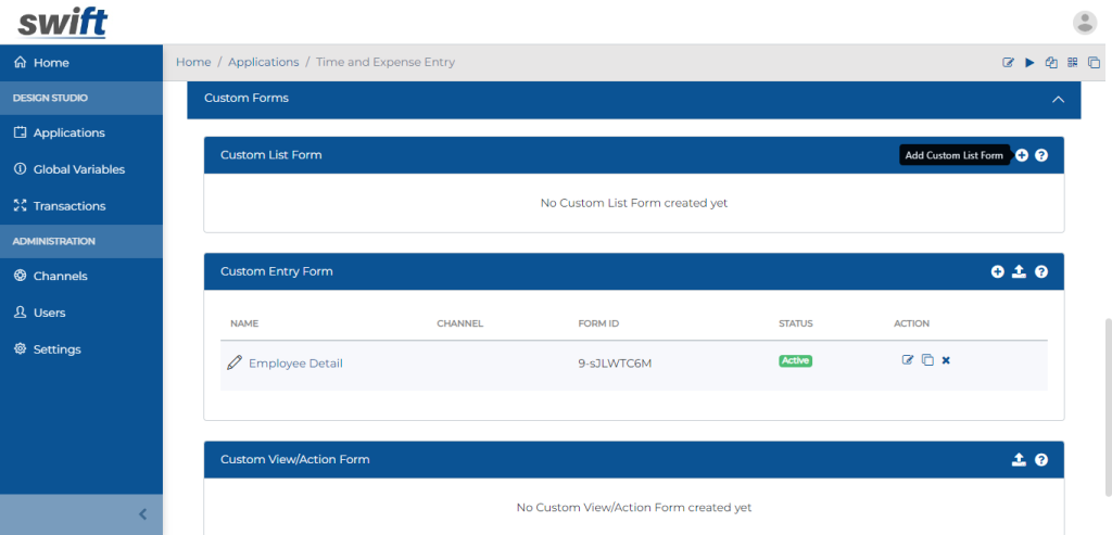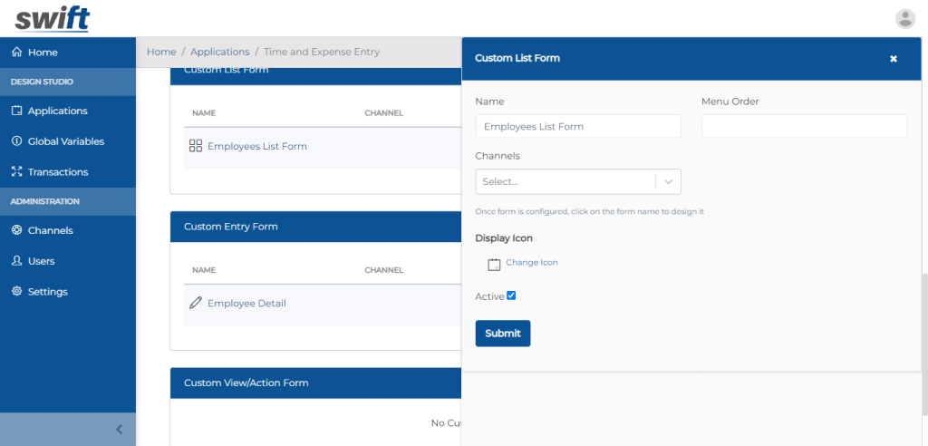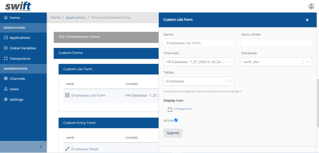 Create Swift Custom DB Listing Form