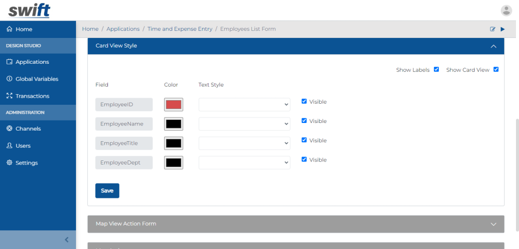 Login in to the App Design Studio using your Swift admin account