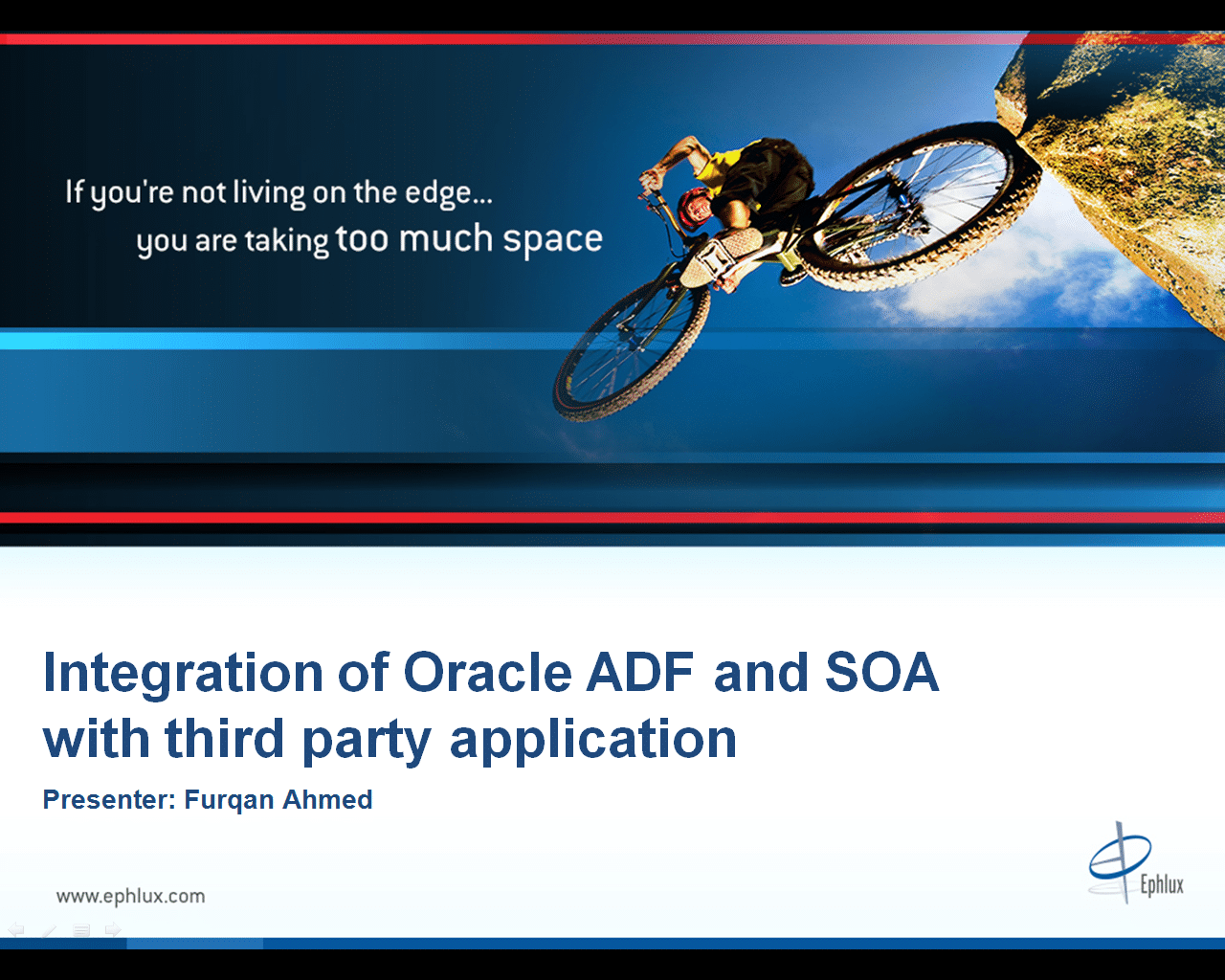 We have launched a hands-on training series on Integration of Oracle ADF and SOA (Service Oriented Architecture). With the help of this training series, ADF Developers can learn to integrate their Oracle ADF applications with third party applications using BPEL, webservices and powerful Data Controls in ADF Framework.