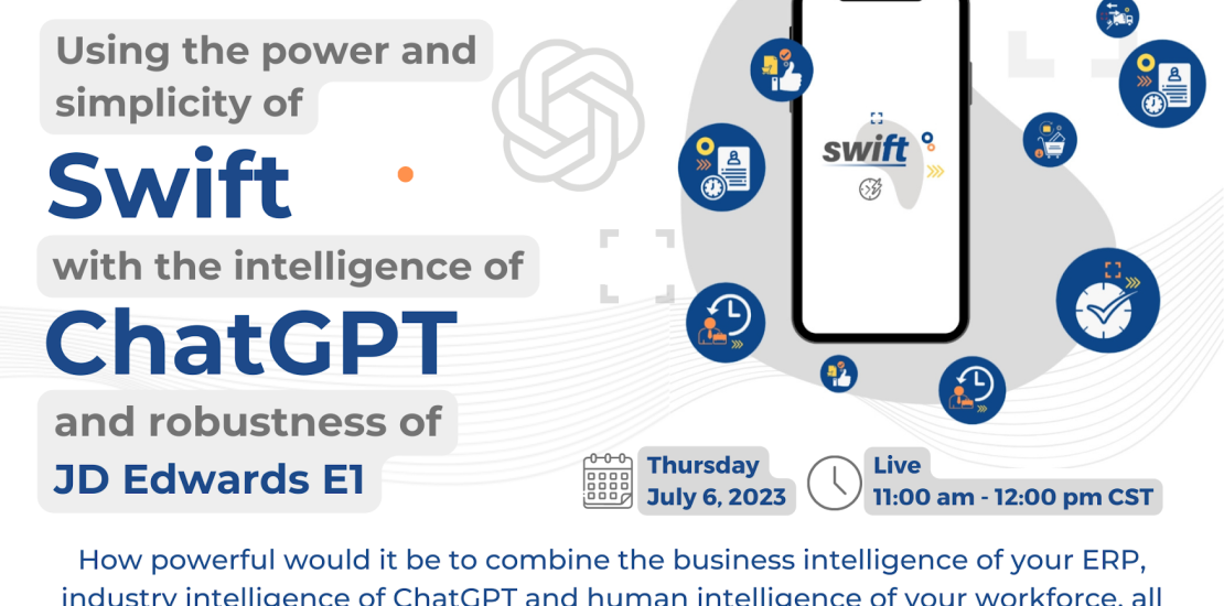 Join our webinar to experience the Power of Swift with the intelligence of ChatGPT and robustness of JD Edwards E1