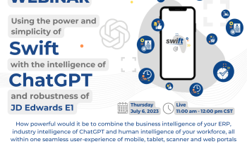 • Join our webinar to experience the Power of Swift with the intelligence of ChatGPT and robustness of JD Edwards E1