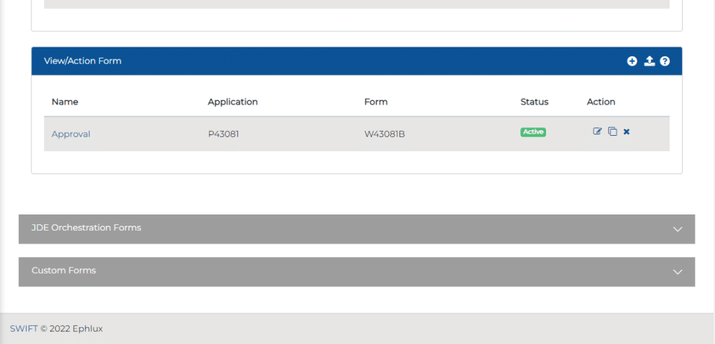 - Select the JD Edwards Application name, Form Name, Version and Actions from their respective dropdowns.