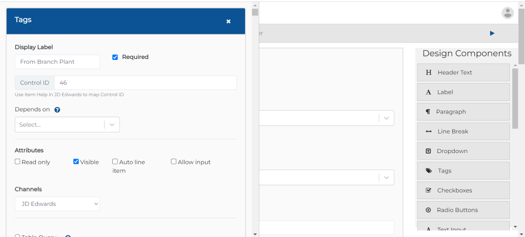 Click on the Tags or Dropdown Field from the Toolbox and press Edit on the Control to configure it.