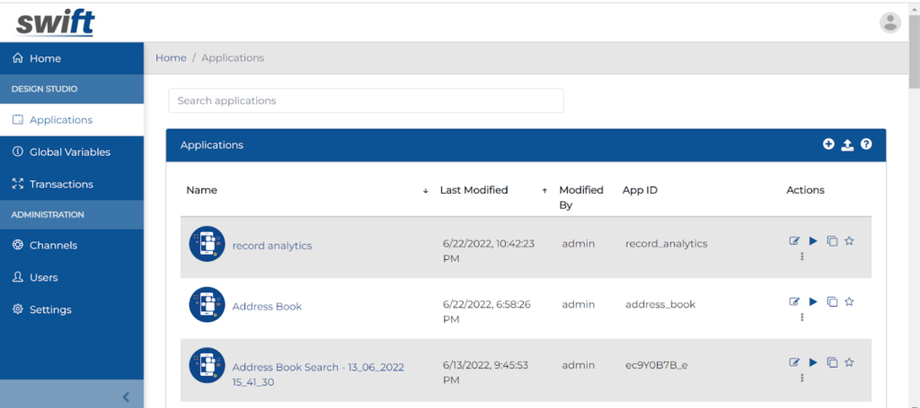 Click the Application in which you want to use the above-mentioned features. This will open up the App Designer: