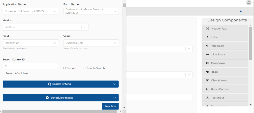 - Enter Application Name, Form Name, Version, Field & Value to fetch data from the required JD Edwards form.