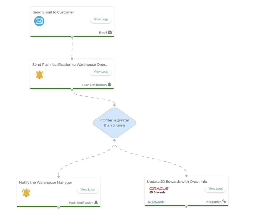 Effortlessly create end-to-end workflows and connect them with push notifications, emails and integrations.