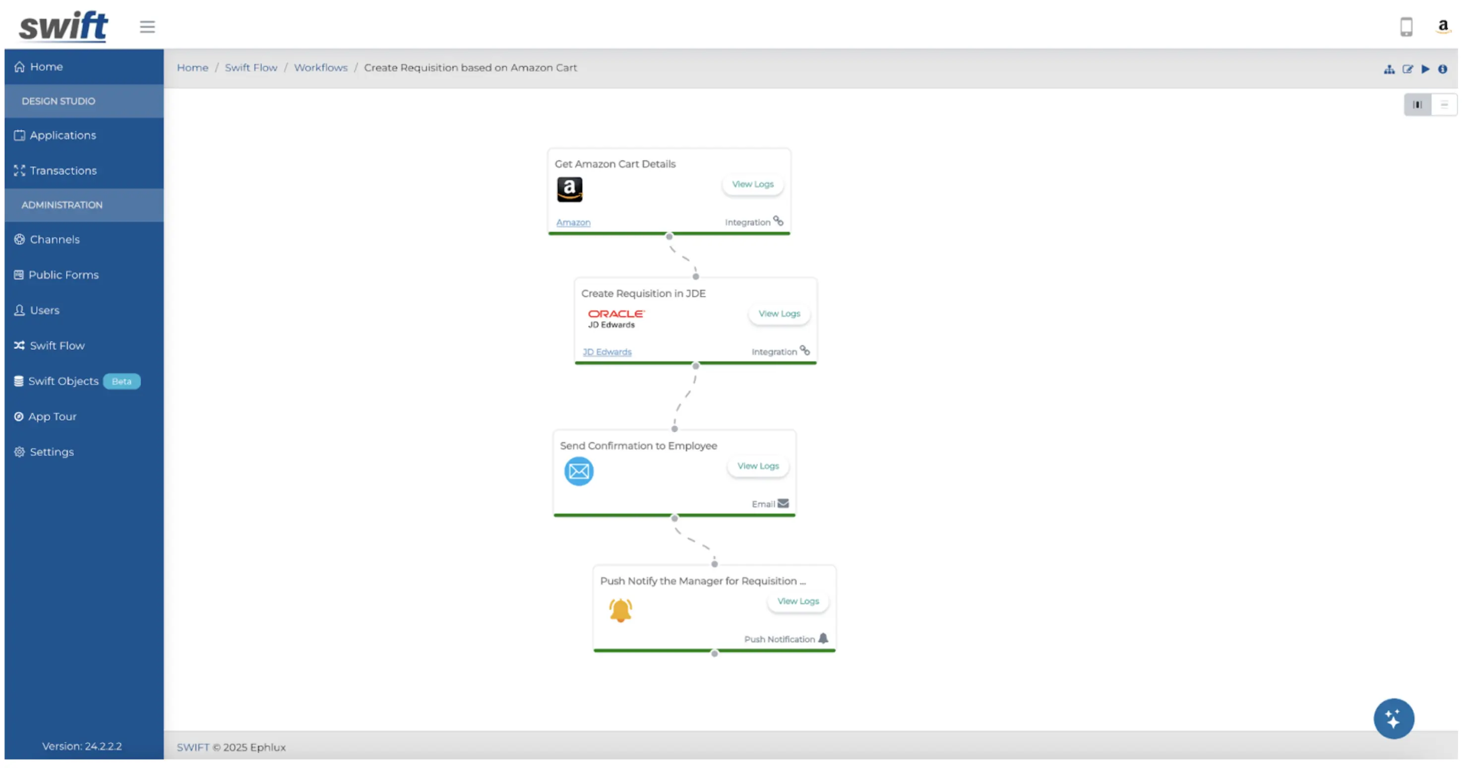 Swift’s + AI No-Code tool transforms Amazon Business Procurement by connecting it to your ERP and enterprise systems. Build tailored Apps, Portals, and AI Agents to unify workflows, streamline processes, and adapt to our business needs, all without writing a single line of code