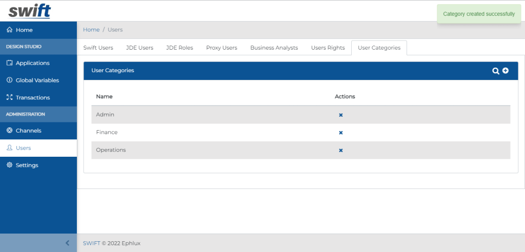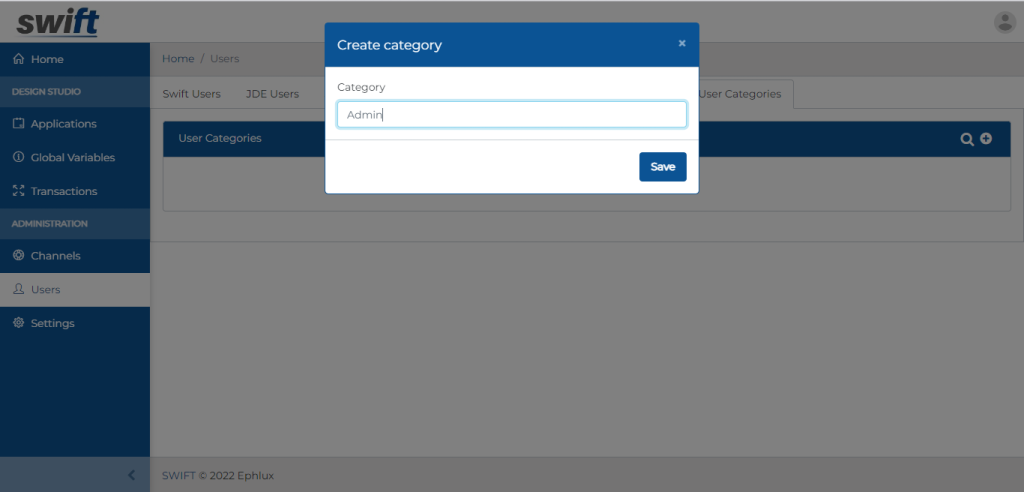 Click on the Users tab which will direct you to the swift user’s tab. Click on the last tab – user categories and create your categories