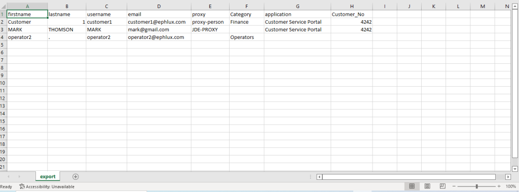 Click on the Users tab which will redirect you to the user’s page. On the right side of the navigation bar, there is an arrow pointing to the south. Click on that arrow and an excel file, containing all relevant information about the users will be downloaded